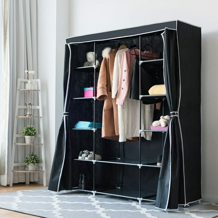 Black 60 Inch Wardrobe Closet Portable Clothes Storage Organizer