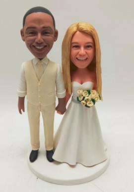 Showcase the bride and grooms ethnic heritage with a wedding cake topper that reflects the bride and grooms nationality featuring custom skin and tones and hair colors.