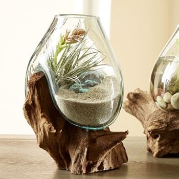 Hand Blown Molten Glass Recycled Wood Terrarium Betta Fish Bowl