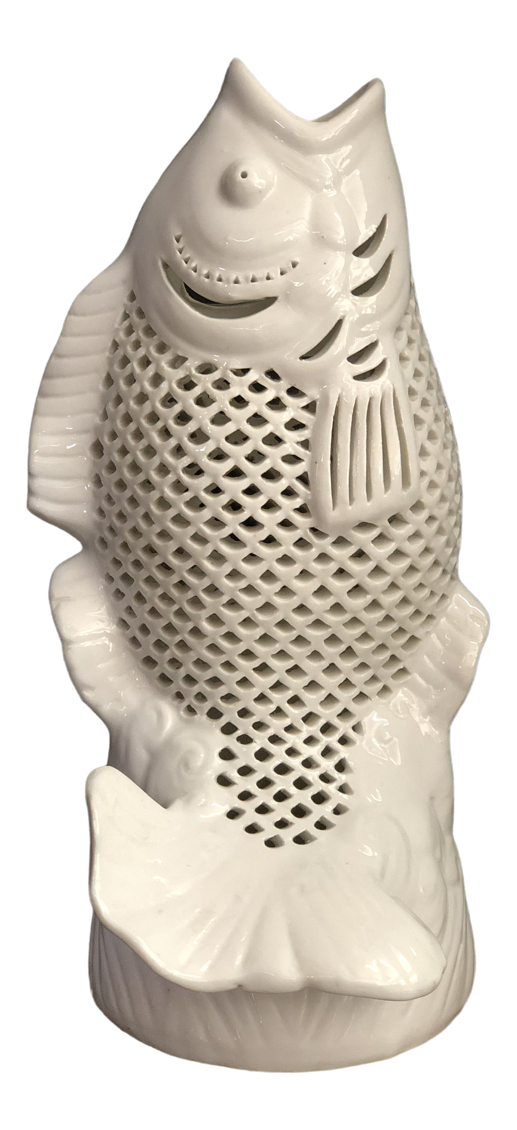 Mid Century Blanc De Chine Pierced Porcelain Koi Fish Vase Vase