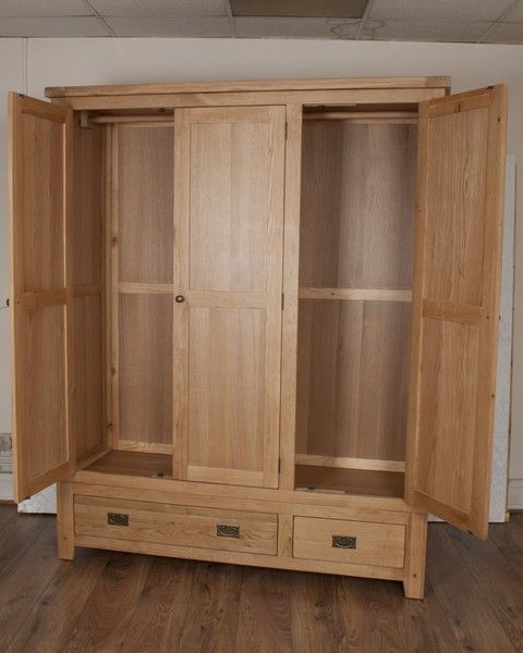 Solid Oak 3 Door 2 Drawer Wardrobe In Chunky Harrogate Natural