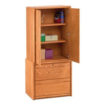 Contemporary Solid Light Oak Combination Wardrobe Two Panelled