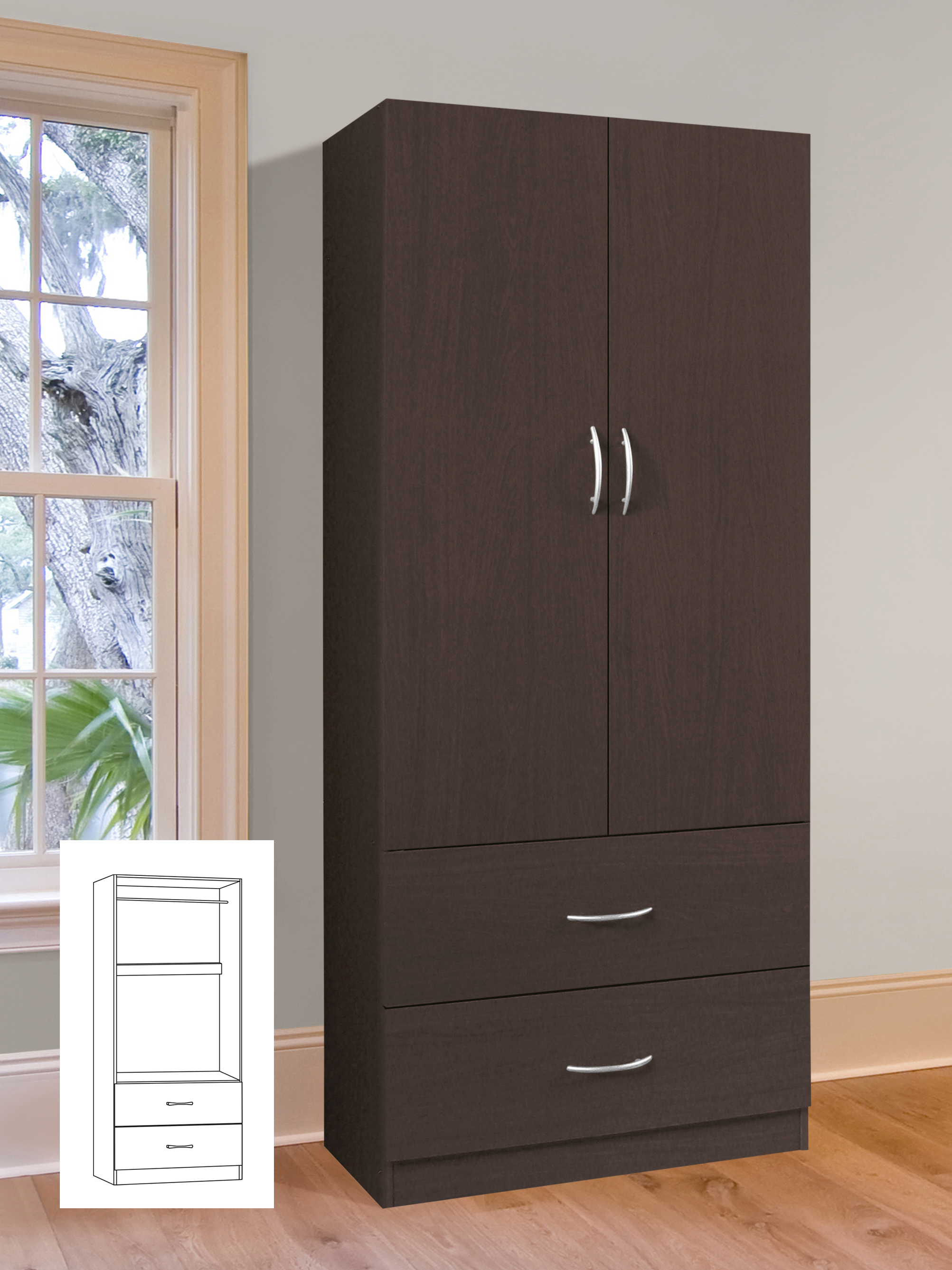 Hodedah Imports 2 Drawer 2 Door Wardrobe Espresso Brickseek