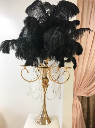 Centerpiece Rental Flowers Ostrich Feathers Crystals Candelabras