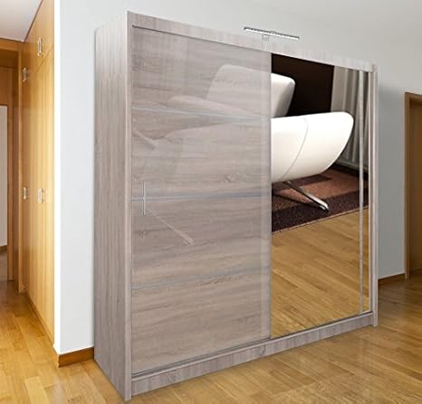 New Free Standing 6ft Wide 7ft Tall Mirror Sliding Door Wardrobe
