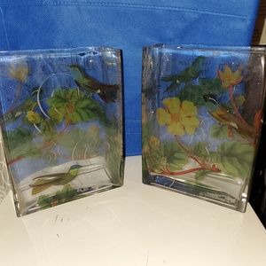 Fringe Studio Art Glass Tiffany Rectangle Vase Birds Transferware