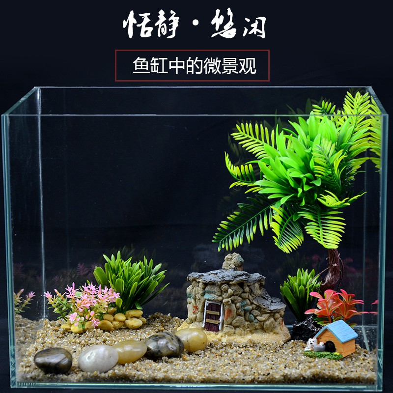 Benar Air Rumput Akuarium Kaca Akuarium Kecil Ruang Tamu Desktop