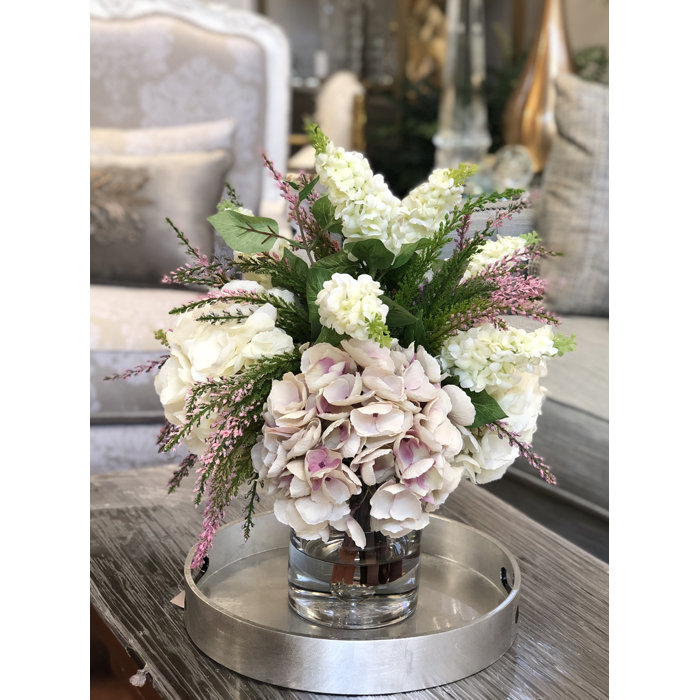 Hydrangea Centerpiece In Glass Vase Reviews Birch Lane
