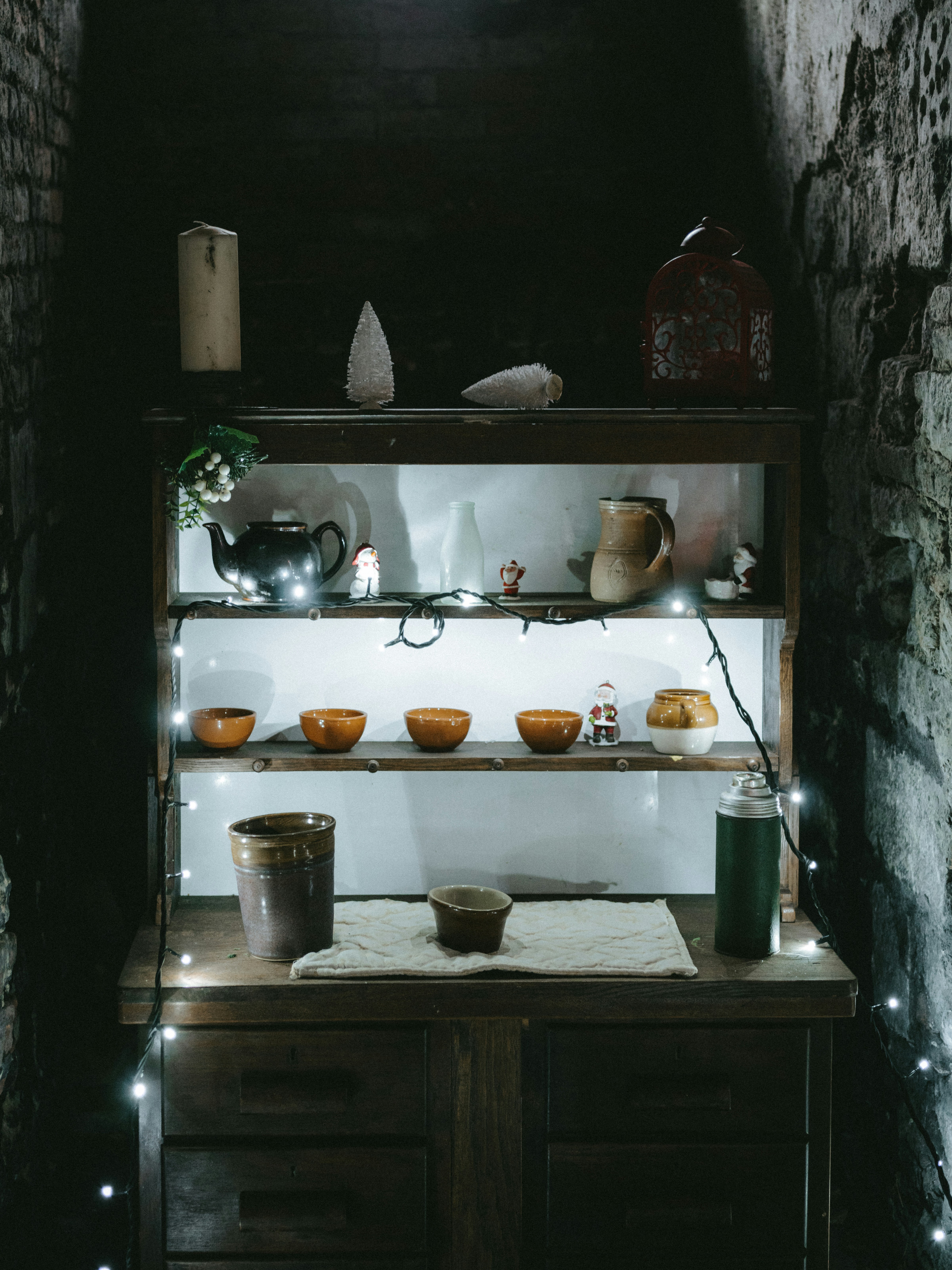 Green Ceramic Kettle Near Bowls Vases And Pitcher On Shelf Photo