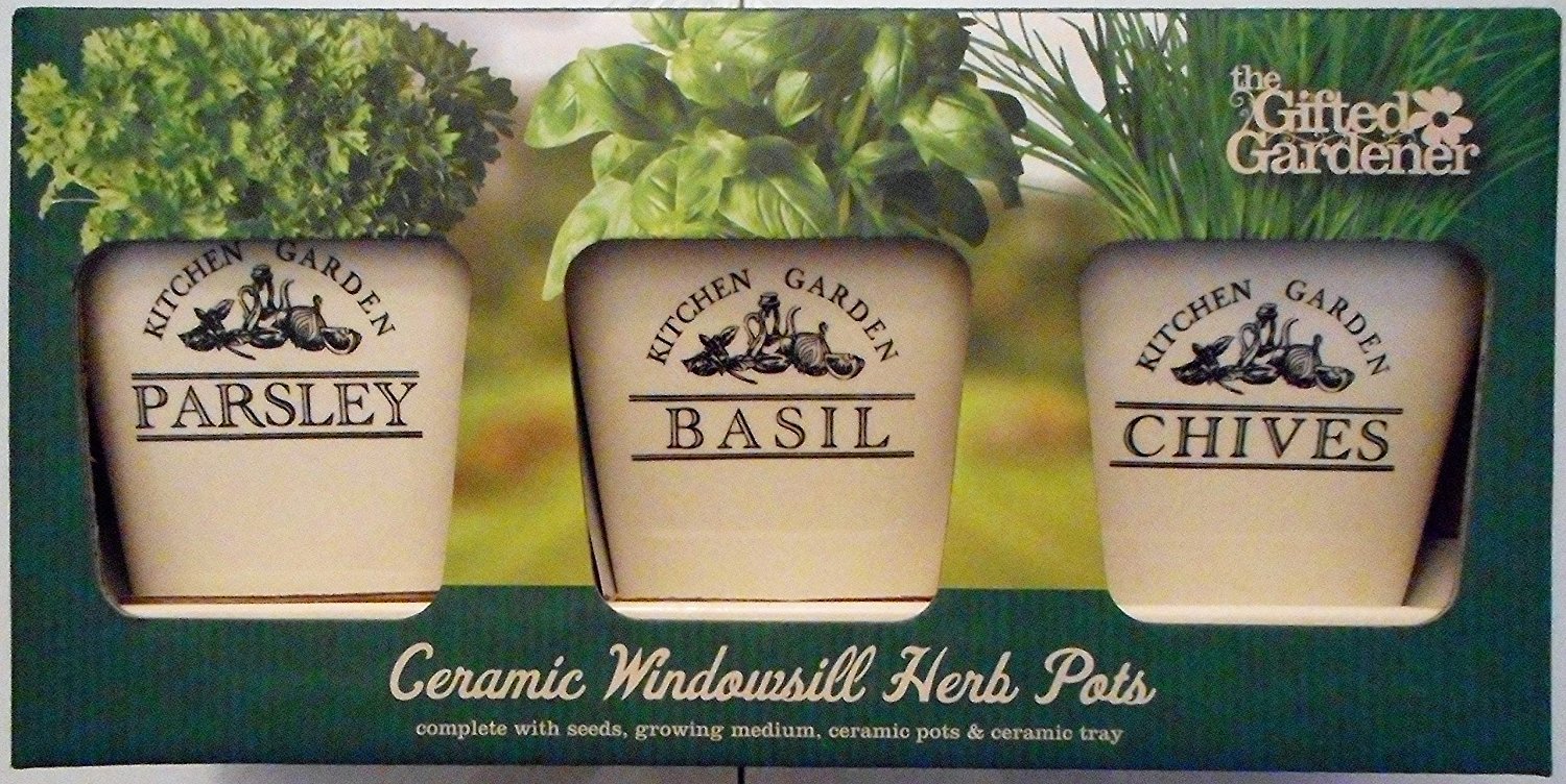 Windowsill Herb Pots Growing Kit Basil Parsley And Chives