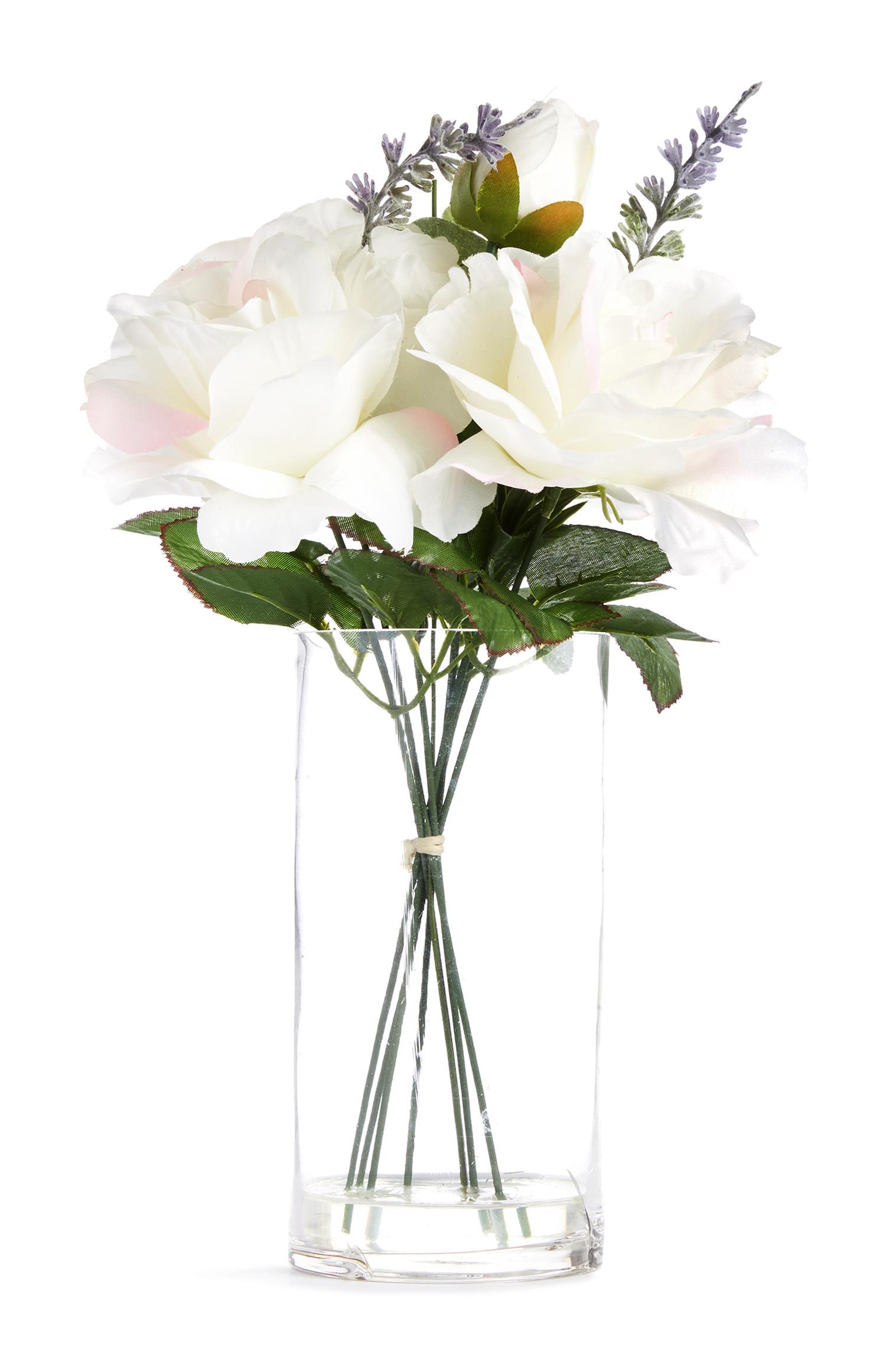Artificial Large Rose Arrangement In Glass Vase Bloomr