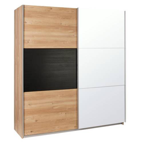 Universal large sliding door mirrored wardrobe with oak effect walnut effect white or black framecombining the size of a fitted wardrobe with the convenience of flat pack furniture this large universal wardrobe contains a wealth of storage space for all your fashion favesa pair of smooth sliding doors glide open to reveal two sides each with its own hanging rail and high shelf.