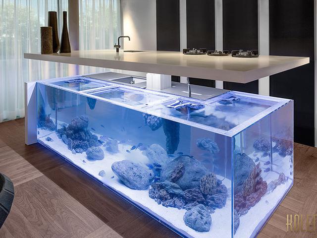 Menakjubkan Meja Dapur Ini Ditopang Oleh Akuarium Besar