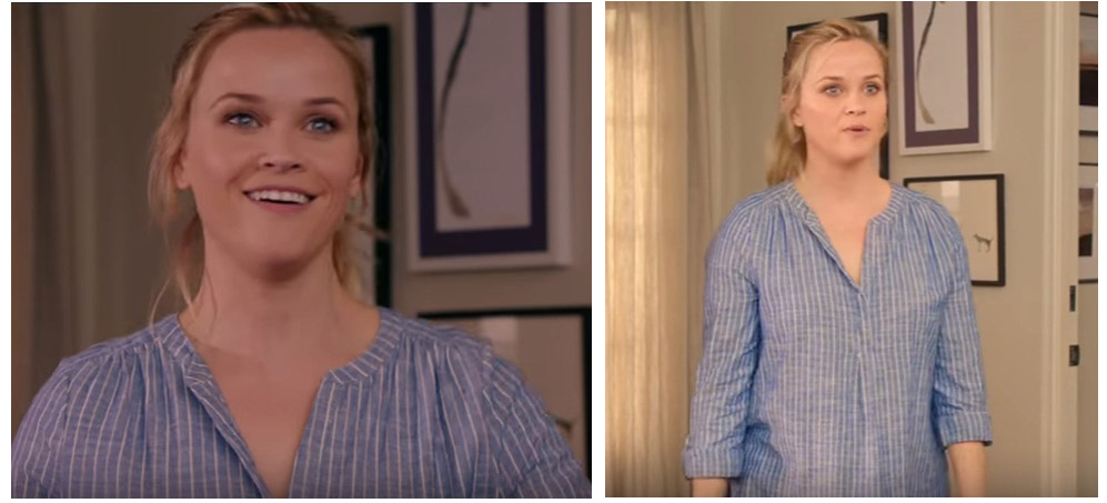 Get Reese Witherspoon S Pinstriped Blouse From Home Again Fashion