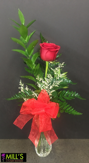 Flowers By Shirley Love Romance One Red Rose In Bud Vase With