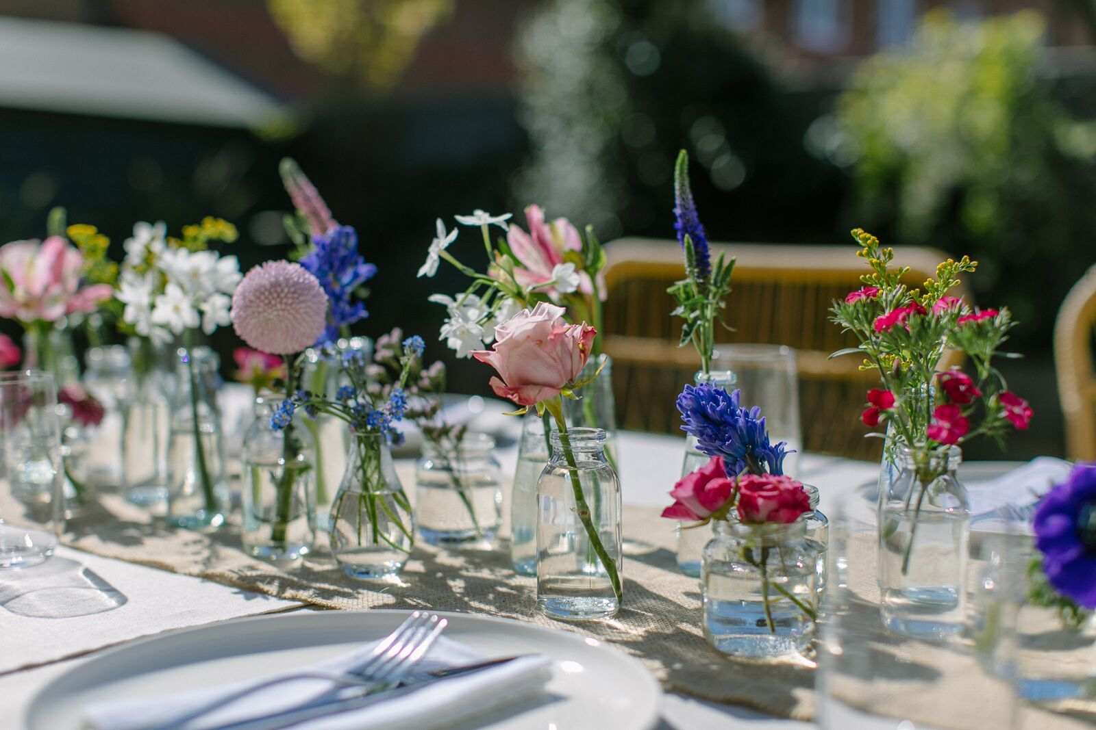 Small Flower Arrangements In Ball Glass Vases The Table Of The