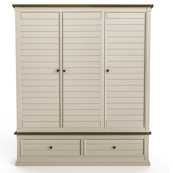 Emery Wooden Wardrobe Wide In Antique White With 3 Doors