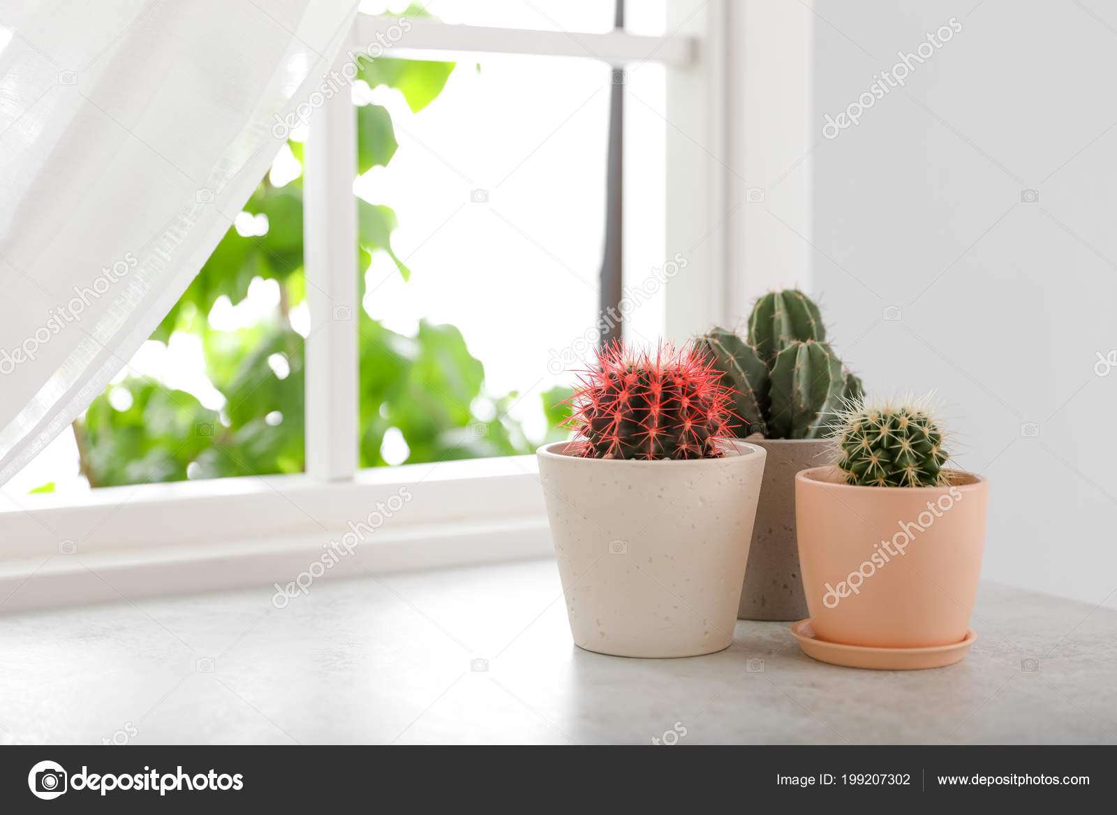 Cactus On Windowsill Stock Photo 6c61e743 Da85 4f18 8d67